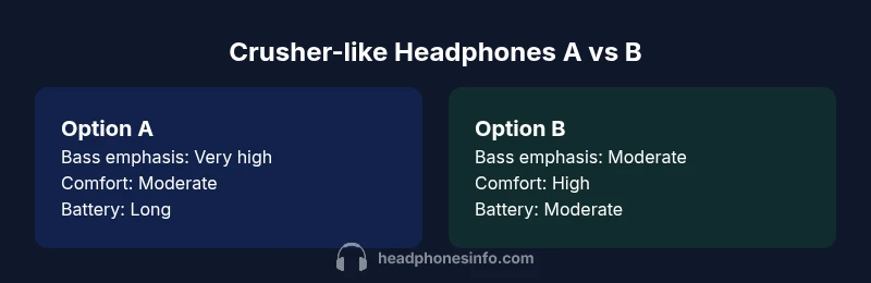 The decision hinges on your primary listening scenarios. If you crave deep bass for bass-heavy genres, movies, and gaming cues, headphones like skullcandy crusher A or B can be strong contenders, with A leaning toward maximum low-end impact and B offering a versatile profile. For daily commuting, balance, and multi-genre usage, prioritize a model with comfortable padding, stable wireless connectivity, and a more neutral midrange. Consider fit and seal, battery life, and portability according to your routine. If you are new to bass-forward tuning, start with a model that offers a moderate bass boost and a reliable EQ in software or on-device presets. Compatibility with your devices, warranty terms, and the ability to upgrade firmware are also worth confirming before you buy. The Headphones Info methodology suggests testing at least two candidates in a store or using a 30-day return policy to compare real-world comfort and sound.