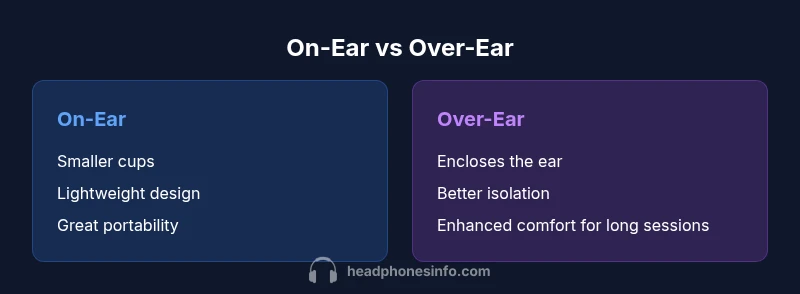 Are headphones on ear or over ear? This comparison distills the core design differences to help you decide which style fits your needs. According to Headphones Info, over-ear models typically offer greater comfort and isolation, while on-ear designs prioritize portability and quick use. For 2026 shoppers, the choice often comes down to where you’ll wear them and how long you’ll wear them.