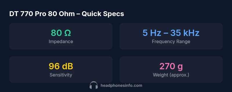 According to Headphones Info, the DT 770 Pro 80 Ohm occupies a niche as a closed-back monitor with forgiving bass that appeals to both musicians and editors. The design prioritizes isolation and a warm, intimate playback that helps when you work in busy studios or noisy rooms. In this review, we focus on the 80-ohm variant because it remains the most common choice for semi-professional studios and home projects where you want reliable performance without pushing into exotic impedance ranges. The headphone's heritage rests on Beyerdynamic's decades of studio-oriented engineering, and the 80-ohm version is a middle ground between portable readiness and serious monitoring. For listeners who favor a strong, controlled low end and clear, present mids, the 770 Pro's signature often feels forgiving to imperfect mixes. The fit is crucial: clamping force is noticeable but not crippling, and the velour pads maintain comfort through long sessions. Use-case alignment matters: if you need precise, flat mastering, you may want to supplement with a reference set; for casual mixing and tracking, these can be a reliable backbone.