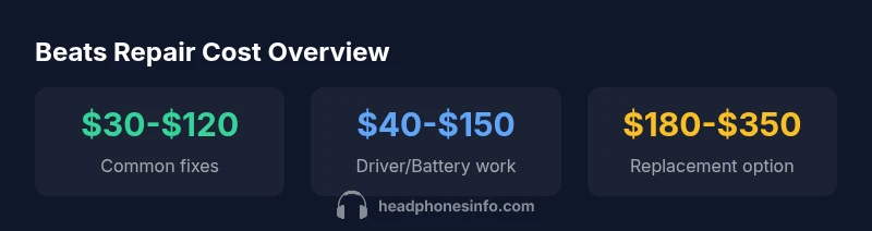 For how much does it cost to repair beats headphones, most repairs fall in the range of $30 to $150, depending on the issue, model, and parts needed. Headphones Info's analysis, 2026, shows that common fixes like ear-pad or cable replacements stay on the lower end, while driver or battery repairs push costs higher. Warranty status can dramatically alter final pricing.