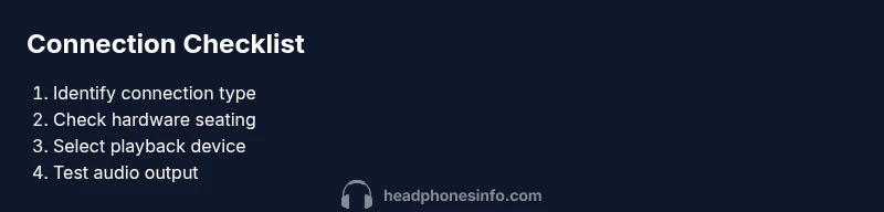 Headphones connect to laptops in several ways: a wired 3.5mm or USB C connection, a USB audio dongle, or wireless Bluetooth. The method matters because the steps to verify the connection differ. According to Headphones Info, the most common pain points come from misidentified output devices, drivers, or a Bluetooth pairing hiccup. In this section we’ll map out what it means for headphones to be connected and how the operating system recognizes them. By understanding the underlying signals—sound path, device status, and driver state—you can diagnose most connection issues quickly and with minimal guesswork.