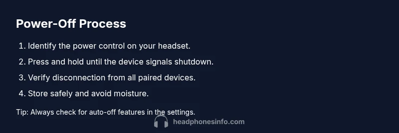 When you ask how to headphones off, you’re seeking a safe, quick power-down that preserves battery life and minimizes wear. This practical guide covers Bluetooth and wired models, explains why powering down matters even for daily use, and shows how to avoid common mistakes. According to Headphones Info, a deliberate shutdown helps prevent phantom connections and reduces heat buildup during idle periods. In the real world, the best approach depends on your model and how you typically use the device. The core idea is simple: turn the device off when not in use, but do so in a way that supports reliable reconnection when you next need audio.