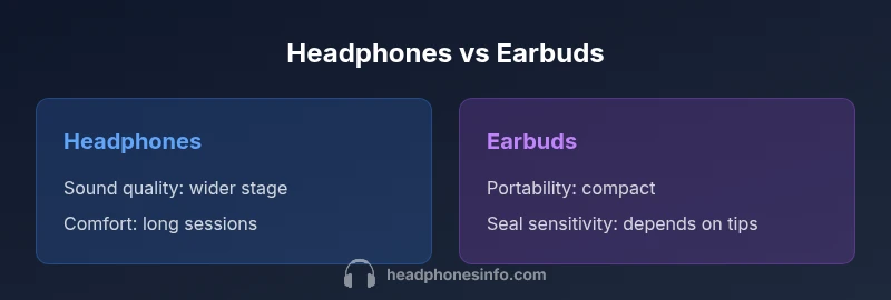The question is often framed as a binary choice, but the real decision hinges on context, activity, and personal preference. Throughout this guide, we explore the practical differences between headphones and earbuds and answer: is it better to wear headphones or earbuds given different environments? According to Headphones Info, the best choice emerges when you map listening goals to fit, comfort, and mobility. In static settings like a desk job or a home studio, over-ear designs tend to deliver more accurate sound and consistent isolation, whereas on the move, compact earbuds win for convenience. This section sets the stage by clarifying what counts as “better” in each scenario, including how room acoustics, background noise, and wearing comfort shape a decision. The bottom line is that neither option is categorically superior; both have strengths that align with distinct usage patterns.