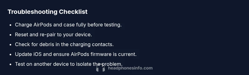 Before diving into complex steps, run these fast checks. Confirm the AirPods are charged and the case lid is closed, then reopen and place AirPods in your ears. On iPhone, open Settings > Bluetooth and forget the AirPods, then re-pair them. Check for software updates on your iPhone and ensure the AirPods firmware is current (this is automatic but can be triggered by reconnecting to a device). Inspect the charging contacts for debris or lint and clean gently with a dry, soft brush. If you notice moisture or condensation, let devices dry completely before testing again. If you have multiple devices, try pairing with another one to see whether the issue follows the headphones or the host device. Finally, disable any audio routing apps that might change how sound is directed to the AirPods.