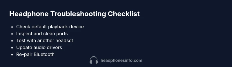 According to Headphones Info, laptop headphone failures are usually solvable with a few fast checks. The phrase captures a moment of frustration when audio suddenly stops, often traced to hardware wear or software settings. In 2026, Headphones Info analysis shows software issues and misconfigured output devices are the leading culprits, especially on Windows and macOS. This guide from the Headphones Info Team is designed to be urgent and practical, guiding you through a fast, logical flow to restore audio. Whether you’re using wired earbuds, over-ear headphones, or wireless Bluetooth cans, the same rules apply: isolate the symptom, test a quick fix, then escalate to driver or hardware checks if needed. By the end you’ll know exactly which step to take next and how to prevent this from recurring.