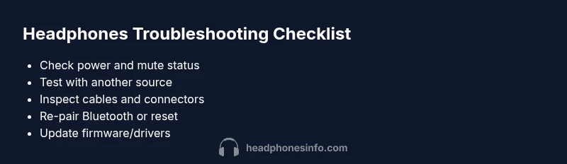 When audio devices misbehave, the cause is rarely mysterious. In most cases, the problem falls into a few predictable camps: power or battery, a loose or damaged connection, a Bluetooth pairing snag, or a faulty jack. According to Headphones Info, the majority of headphone failures in 2026 arise from simple hardware connection issues or outdated software. This makes quick, structured troubleshooting possible for both wired and wireless models. In this section we’ll explore the most common failure modes, how to spot them quickly, and what to check first to avoid unnecessary replacements. The goal is to empower you to diagnose confidently and fix without unnecessary downtime, so you can get back to your music, calls, or gaming as soon as possible. Remember: treat safety seriously—unplug devices when inspecting cables, and avoid forcing connectors that feel stuck.