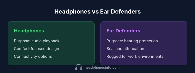 are headphones the same as ear defenders? Not quite. This comparison matters because headphones are primarily audio devices intended for listening comfort and sound quality, while ear defenders protect hearing in loud environments; the two categories differ in design, materials, and safety standards. The quick distinction helps shoppers navigate buying decisions quickly.