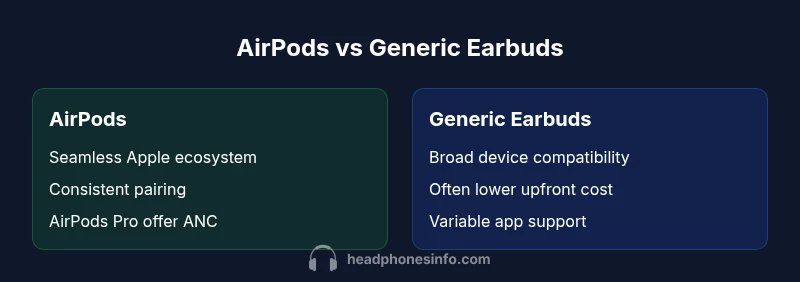 A data-driven, analytical comparison of AirPods and generic earbuds, covering ecosystem, sound, features, and value. Learn which option fits your devices and budget with practical guidance from Headphones Info.