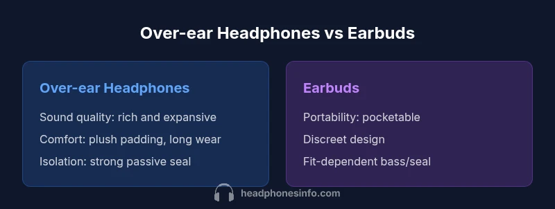 The question of why headphones over earbuds matters for most listeners hinges on how sound is reproduced, how long you wear them, and where you typically listen. In an era when music, podcasts, and games demand clarity and immersion, the distinction between an over-ear design and a compact earbud design becomes practical rather than academic. According to Headphones Info, understanding the interaction between driver size, enclosure, and ergonomics helps translate specs into real-world comfort and performance. In this section, we establish a data-driven framework that weighs objective specs against personal preferences, budget, and use-case realities. This is not about declaring a universal winner but about mapping the trade-offs so you can answer the question: why headphones over earbuds in your life?