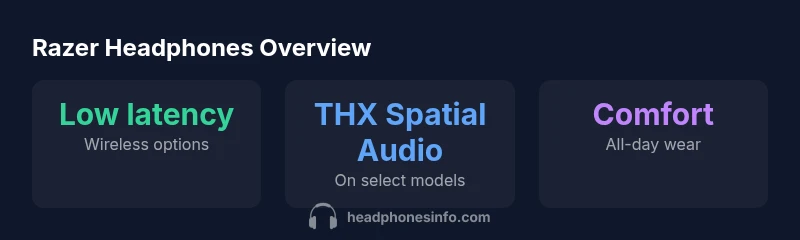 Razer headphones are a line of gaming headsets designed to cover a broad spectrum from casual PC gaming to competitive play. The brand emphasizes low-latency connections, comfortable fit, and audio features that help players hear environmental cues and teammate directions with clarity. In 2026, razer headphones span wired and wireless options, making them versatile for multi-platform setups, including PC, consoles, and mobile devices with compatible adapters. The Headphones Info team notes that the best razer headphones balance sound quality, mic performance, and long-term comfort, all while integrating software features like customizable EQ and latency filters. For many listeners, razer headphones deliver a reliable, feature-rich experience that supports extended gaming sessions and immersive soundscapes. The emphasis on durability and ergonomic design remains a differentiator in a crowded market, which is why gamers often turn to razer headphones for a consistent baseline of performance. According to Headphones Info, razer headphones have carved a niche in gaming for their low-latency wireless options and robust build quality.