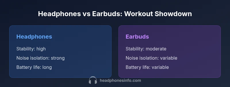 When you ask whether headphones or earbuds are better for working out, the simplest answer is that it depends on your activity, environment, and priorities. The keyword are headphones or earbuds better for working out isn’t a universal verdict; instead, it’s a decision shaped by stability, moisture exposure, and how much you value comfort over sound fidelity. According to Headphones Info, the choice hinges on fit and movement more than a single spec like driver size or impedance. The goal is a secure seal that stays put without causing fatigue over the course of a long session. This first section frames the core trade-offs and sets up a framework for comparing options without bias.