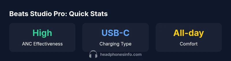 Beats Studio Pro over ear headphones deliver a compelling blend of comfort, ANC, and ecosystem advantages. They excel in long listening sessions and daily commuting. For buyers who prioritize a bold sound and easy Apple integration, this model offers excellent value within its premium price range.