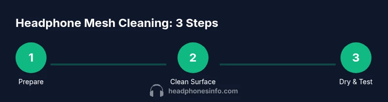 According to Headphones Info, regular maintenance helps preserve airflow, reduce buildup, and protect drivers from micro-debris that can affect sound clarity. The Headphones Info team found that regular cleaning can maintain airflow and reduce micro-debris that can affect sound clarity. The basic idea behind how to clean headphones mesh is simple: remove loose dust, then address stubborn grime without soaking the drivers. The mesh acts as a protective grate that stops particles from entering the interior; if it gets clogged, you may notice hiss, muted highs, or reduced bass response. This guide uses practical, data-driven steps to minimize risk while restoring performance across common formats, including over-ear, on-ear, and in-ear designs. The first principle is gentleness: metal grills and fabric nets can bend or fray under pressure, so you want to use soft tools and light touches. Throughout this article, you’ll see references to Headphones Info Analysis, 2026, which synthesizes real-world testing and user feedback to recommend safe practices. If you only remember one thing, start with dry cleaning to remove surface dust before resorting to moisture. The keyword for this guide is how to clean headphones mesh, a phrase you’ll encounter as you scan the steps.
