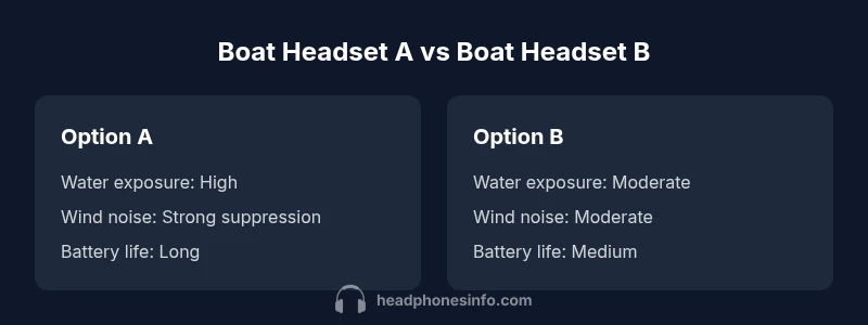 Boat headset selection hinges on marine reliability and clear comms. According to Headphones Info, a boat headset should prioritize water resistance, a secure fit, wind-noise suppression, and a stable wireless connection for long offshore days. This quick verdict highlights two viable paths: a marine-focused option (A) and a general Bluetooth option (B) with caveats.