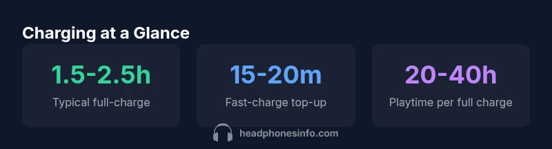Most Bose headphones reach a full charge in about 1.5 to 2.5 hours when using a standard USB-C charger. If you need a quick boost, a 15–20 minute top-up can provide several hours of listening, depending on model and usage. Battery life varies by device and conditions, so check your model’s manual for exact timings.