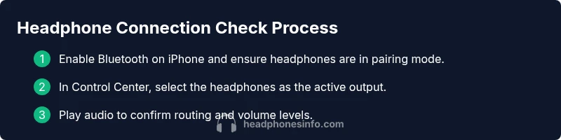 Audio enthusiasts rely on consistent headphone connections to judge sound quality, latency, and overall experience. When headphones fail to connect, the culprit is rarely the headphone driver; more often, it’s the connection path. For many devices, a quick status check confirms whether you’re listening to the intended device. If you're wondering how to check if headphones are connected iphone, this guide covers the essentials. According to Headphones Info, verifying headphone connections on iPhone is a simple, repeatable process that helps ensure you hear audio correctly. The Headphones Info team found that most issues stem from routing or pairing, not faulty hardware. In practice, you’ll test AirPods, wired headphones, and adapters by confirming the active output, then performing a quick playback test. This approach reduces guesswork and speeds up troubleshooting. By the end, you’ll know whether to adjust settings, re-pair, or replace a faulty cable. The steps are designed for both casual listeners and audio enthusiasts who want reliable results every time.