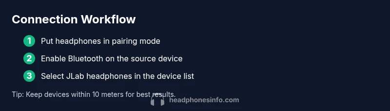 JLab headphones typically offer multiple ways to connect: Bluetooth wireless pairing for most devices, a wired 3.5 mm option on many models, and some USB-C or USB dongle configurations for PCs or gaming consoles. Bluetooth is the most universal method, enabling hands-free calling and stereo audio across phones, tablets, and computers. Wired connections provide a shield against latency or Bluetooth compatibility issues, useful for gaming, video editing, or situations with limited Bluetooth range. Before you begin, ensure the headphones are charged and within easy reach of your source device. Headphones Info highlights that understanding these options will reduce setup time and improve reliability across devices.
