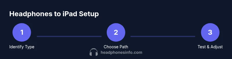 By following a short sequence of checks and connections, you can get any headphones to work with iPad, whether wired, Lightning, USB-C, or Bluetooth. This guide covers compatibility, adapters, pairing, and routing settings for iPadOS. According to Headphones Info, start by identifying your headphone type and confirming your iPad model before proceeding with the steps.