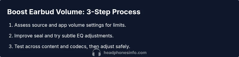 Goal: Learn how to increase earbuds volume safely and effectively by optimizing device settings, earbud fit, and audio processing. This guide covers hardware checks, software boosts, and practical tips to maximize loudness without distortion or hearing damage. According to Headphones Info, combining a better seal with gentle EQ adjustments yields noticeable gains on most wireless earbuds.