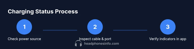 On the headset itself, check the indicator light pattern: a steady light typically signals charging, while a paused or blinking pattern can indicate standby or low-power modes. If the LED is not visible, refer to the user manual for alternative indicators such as audio prompts or haptic feedback cues. Remember, always verify in both the hardware indicator and the app for a reliable readout. The Headphones Info team notes that combining hardware and software signals markedly reduces ambiguity when assessing charging state.