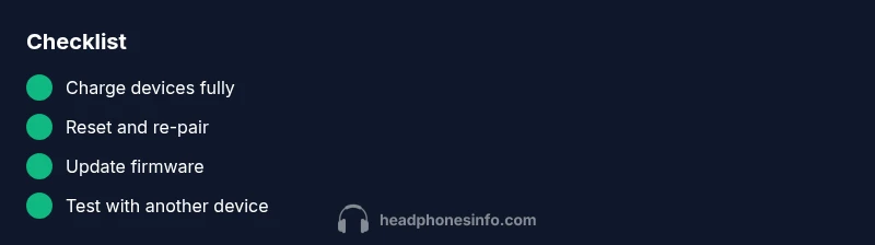 This section presents a fast, linear flow to diagnose what’s going on. Start with symptom observation, move to likely causes, and apply the simplest fixes first. Symptoms to watch: no audio, intermittent audio, or random disconnects. Likely causes: power/battery, pairing conflicts, or interference. Simple fixes include charging, re-pairing, and firmware updates. If the issue persists, escalate to more advanced steps such as resetting device profiles or testing with a different source. The key is to validate each fix before moving on. By following the flow, you’ll isolate the root cause and apply the minimal, most effective remedy. If you remain stuck, seek professional support to prevent warranty issues.