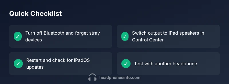 Learn how to fix headphones showing on iPad issues quickly. This step-by-step guide covers common causes, quick checks, diagnostic flow, and prevention tips from Headphones Info.